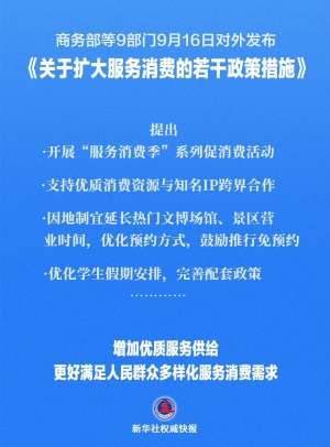 新華社權(quán)威快報丨擴大服務(wù)消費!9部門發(fā)文