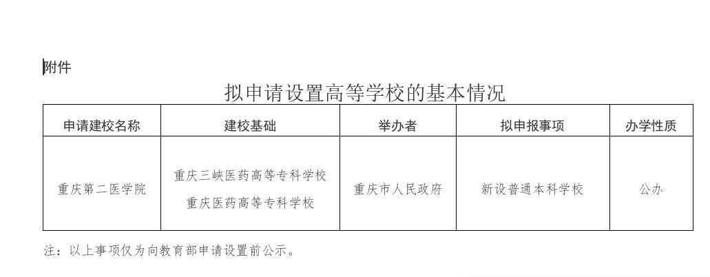 9月22日,重慶市教育委員會發(fā)布《關于擬申請設置高等學校的公示》,如下: