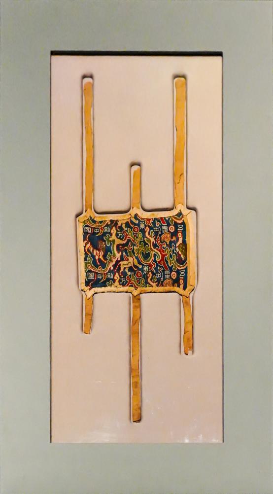 這是2025年5月9日在新疆維吾爾自治區(qū)博物館拍攝的漢代“五星出東方利中國(guó)”錦護(hù)臂。新華社記者 徐宏巖 攝