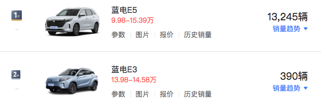 其中,藍電汽車是賽力斯旗下智能電動汽車品牌,于2023年發(fā)布。作為背靠賽力斯的子品牌,目前藍電汽車已推出藍電E5、藍電E5 PLUS和藍電E3車型。不過,不同于問界汽車定位高端智慧新能源車,藍電汽車定位智能電動汽車普及者,售價更親民,主要集中在10至15萬元的大眾消費市場。但在市場知名度以及銷量層面,藍電汽車遠不及問界汽車。零售數(shù)據(jù)顯示,今年前8月,藍電E5累計銷量為1.32萬輛;藍電E3為390輛。相比之下,今年前8月,問界旗下M9、M8、M7累計銷量分別達8.26萬輛、7.83萬輛和4.18萬輛。